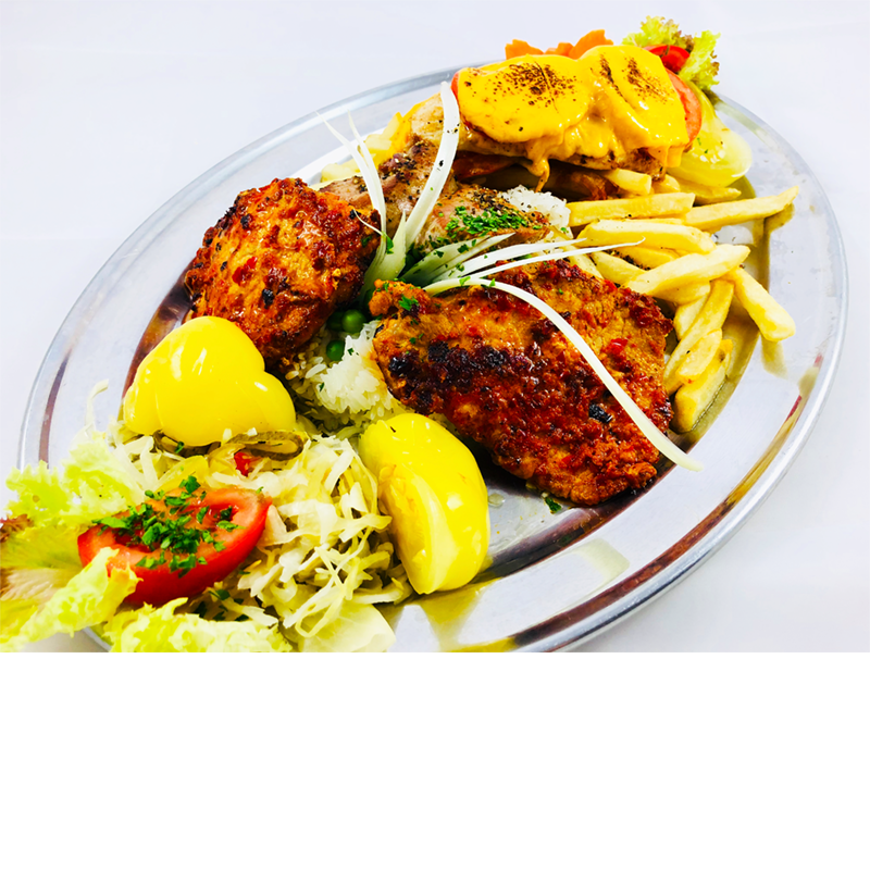 Levesek ~ Előételek ~ Előételek halból ~ Főételek halból ~ Főételek húsból ~ Kétszemélyes tálak ~ Mini manó menük ~ Tészta ételek ~ Grillezett húsok ~ Hamburgerek ~ Saláták ~ Savanyúságok ~ Köretek ~ Desszertek ~ Öntetek ~ Hidegtálak ~ ITALLAP ~ Étlap Kétszemélyes tálak Tálak 2 személyre Tételek adag Haltál két személyre rántott szürkeharcsa, tintahalkarika, fél adag fish & chips, roston fogasfilé, vegyes köret, tartármártás, tatárszósz (kapribogyós, csemegeuborkás majonéz) Allergén: Glutén Allergén: Hal Allergén: Laktóz Allergén: Mustár Allergén: Tojás teljes adag 8.790 Ft Bőségtál két személyre baconnal bordírozott csirkemell, mátrai borzas csirkemellből, fish and chips, sajtkrémmel töltött rösztivel, vegyes körettel, tzatzikivel, tatárszósszal, (kapribogyós, csemegeuborkás majonéz) Allergén: Glutén Allergén: Hal Allergén: Laktóz Allergén: Mustár Allergén: Tojás teljes adag 7.690 Ft Húsimádó tál két személyre provance-i csirkemell, Cordon Bleu, vasalt csirkecomb, fűszeres burgonya, rizs, csalamádé, kovászos uborka Allergén: Glutén Allergén: Laktóz Allergén: Tojás teljes adag 7.690 Ft Grill tál két személyre vasalt csirkecomb, sertésszűz medalion, cheddar sajtos csirkemell, rizi-bizivel, hasábburgonyával, kovászos uborkával, csalamádéval Allergén: Laktóz teljes adag 7.690 Ft Vegatál két személyre rántott gomba, rántott sajt, rántott cukkini, rántott padlizsán, rántott hagymakarika, tartármártás, vegyes köret Allergén: Glutén Allergén: Laktóz Allergén: Mustár Allergén: Tojás teljes adag 7.290 Ft — Az árak az áfát tartalmazzák. — « Főételek húsból Mini manó menük »